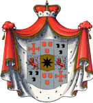 und 1806 sogar souverän, ist in Gold ein achtstrahliger schwarzer Stern. Die Helmzier ist ein goldener Flug,