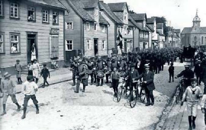 An die belgische Front Schlieffens Plan gilt, und das waldeckische Bataillon steckt mittendrin. Mit der Bahn fährt es bis ins Aufmarschgebiet rechts des Rheins. Am Dienstag, 4. August, überschreiten die drei Bataillone des Infanterie-Regiments 83 um 9 Uhr die deutsch-belgische Grenze. Die Waldecker bilden unter dem Kommando von Major Brosig die Vorhut. Wegen der Verletzung der belgischen Neutralität erklären die Briten noch an diesem Tag Deutschland den Krieg und verlegen Truppen auf den Kontinent. Damit kämpfen die Großmächte der „Tripple Entende“ gegen Deutschland und Österreich-Ungarn. Auch aus Belgien geht umgehend die Kriegserklärung nach Berlin. Dort tritt an diesem Tag der Reichstag zusammen. In einer pathetischen Rede beteuert der Kaiser, seine Regierung habe sich bis zuletzt bemüht, „das Äußerste abzuwenden“. Doch die Feindseligkeiten der Nachbarn in Ost und West seien nun „zu hellen Flammen aufgelodert“. „Uns treibt nicht Eroberungslust, uns beseelt der unbeugsame Wille, den Platz zu bewahren, auf den Gott uns gestellt hat, für uns und alle kommenden Geschlechter.“ Die Parlamentarier beschließen geschossen, Kriegskredite zu gewähren und eine Kriegsanleihe über fünf Milliarden Mark aufzulegen. Auch die gern als „vaterlandslose Gesellen“ gescholtenen Sozialdemokraten sind dabei – das Wort vom „Burgfrieden“ prägt sich ein. In seiner Thronrede beschwört Wilhelm II. die politische Geschlossenheit der Deutschen: „Ich kenne keine Parteien mehr, ich kenne nur noch Deutsche! Zum Zeichen dessen, dass sie fest entschlossen sind, ohne Parteiunterschied, ohne Stammesunterschied, ohne Konfessionsunterschied durchzuhalten mit mir durch dick und dünn, durch Not und Tod zu gehen, fordere ich die Vorstände der Parteien auf, vorzutreten und mir das in die Hand zu geloben.“ Am Donnerstag gerät das waldeckische Bataillon erstmals in ein Gefecht. Vor Lüttich erleidet es die ersten schweren Verluste. Gevatter Tod erhält bis 1918 noch reichlich Ernte … (-sg-)