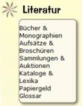 Unter dem Menüpunkt Papiergeld ist eine neue, interessante Rubrik entstanden. Durch die Auswahl dieses Menüpunkts wechseln Sie in eine eigene, an das Papiergeld angepaßte Datenstruktur und veränderte Ausgabemasken. Bitte beachten Sie, daß Suchanfragen, nach Anwahl dieses Menuepunkts, ausschließlich Ergebnisse aus dem Papiergeldbereich liefern. Die Referenznummer wird durch ein vorangestelltes P unterschieden. |