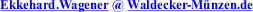 Der Betreiber ist bestrebt, die Urheberrechte an Text und Bild zu beachten. Autoren, die Artikel und/oder Bilder im Rahmen dieses Internetangebots einstellen, erklären gegenüber dem Betreiber, daß Sie persönlich die Urheberrechte daran besitzen oder daß Ihnen eine Genehmigung zur Verwendung durch den Rechteinhaber vorliegt. Die Urheberrechte für selbst erstellte Beiträge und Bilder verbleiben bei den Autoren der jeweiligen Seiten. Einmal erteilte Genehmigungen zur Veröffentlichung von Schrift und Bild können nicht widerrufen werden - das würde den Fortbestand dieser Seiten nachhaltig beeinträchtigen. Nachrichten, Bilder oder sonstige Informationen, die Sie unaufgefordert an diese Webseite senden und für die Sie nicht als Autor in Erscheinung treten, werden nicht vertraulich behandelt und nicht als Ihr geistiges Eigentum erachtet. Die Rechte daran gehen auf Waldecker-Münzen.de über und dürfen frei verwendet werden.